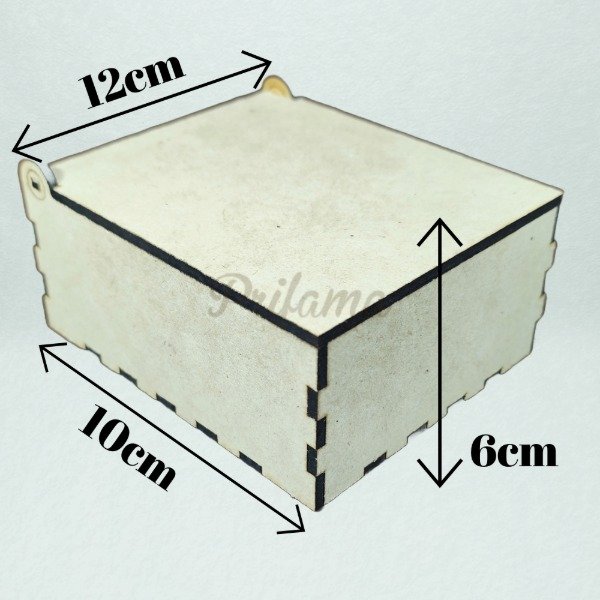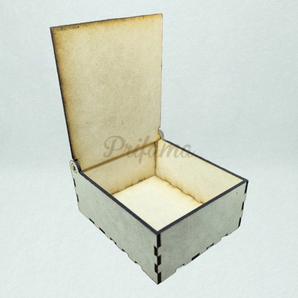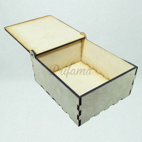 Caja estándar con tapa simple y bisagra en MDF de 3 mm de espesor.
