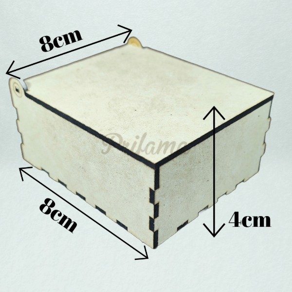 Caja estándar con tapa simple y bisagra fabricada en MDF de 3 mm de espesor.