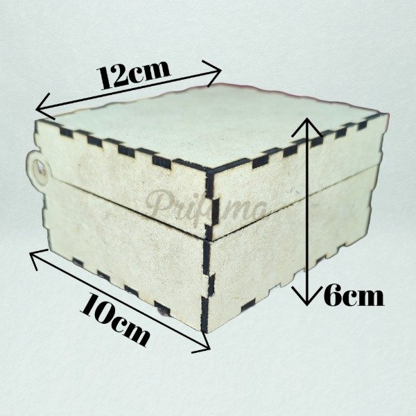 Caja estándar con tapa y bisagra integrada fabricada en MDF de 3 mm de espesor.