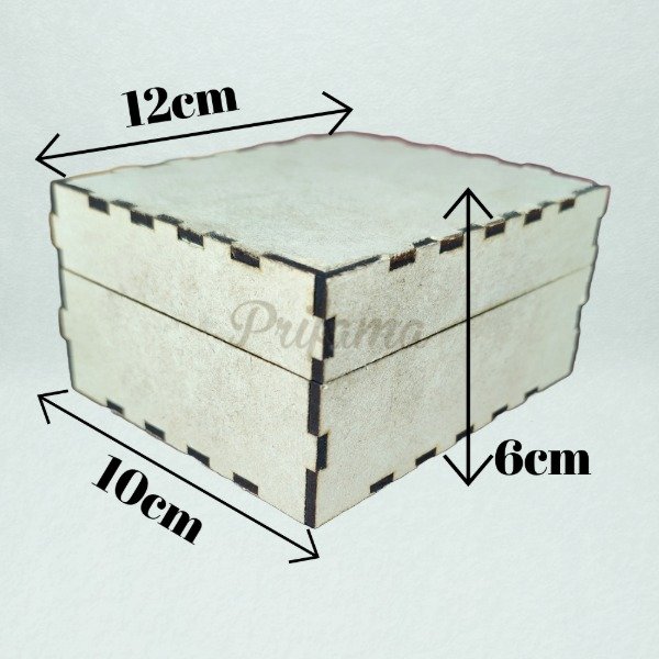 Caja estándar con tapa y bisagra oculta fabricada en MDF de 3 mm de espesor.