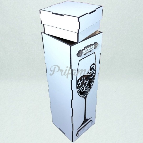 Caja especial para botella de vino, fabricada en MDF de 3 mm en terminación natural o blanca.