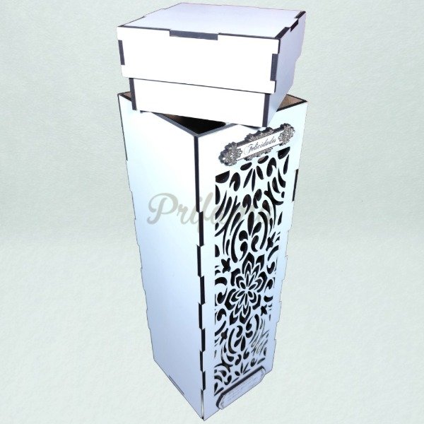 Caja especial para botella de vino, fabricada en MDF de 3 mm en terminación natural o blanca.