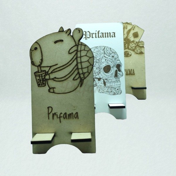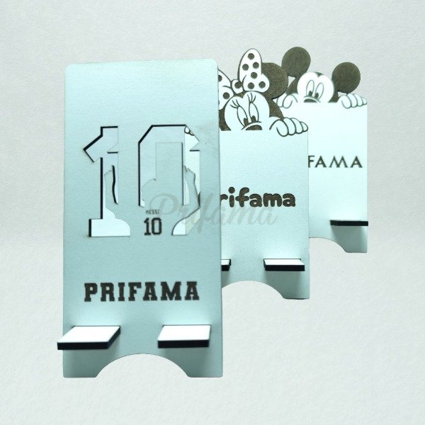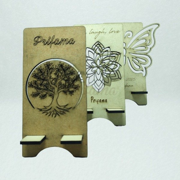 Soporte porta celular fabricado en MDF de 3 mm, práctico y funcional para apoyar el teléfono de manera segura y cómoda.